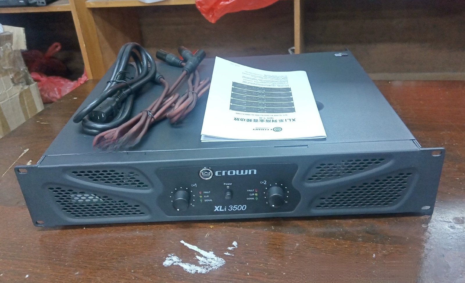 The Crown XLi3500 is a 700W amplifier designed for 220V 50/60Hz power supply. It delivers reliable audio amplification suitable for various sound reinforcement applications.
