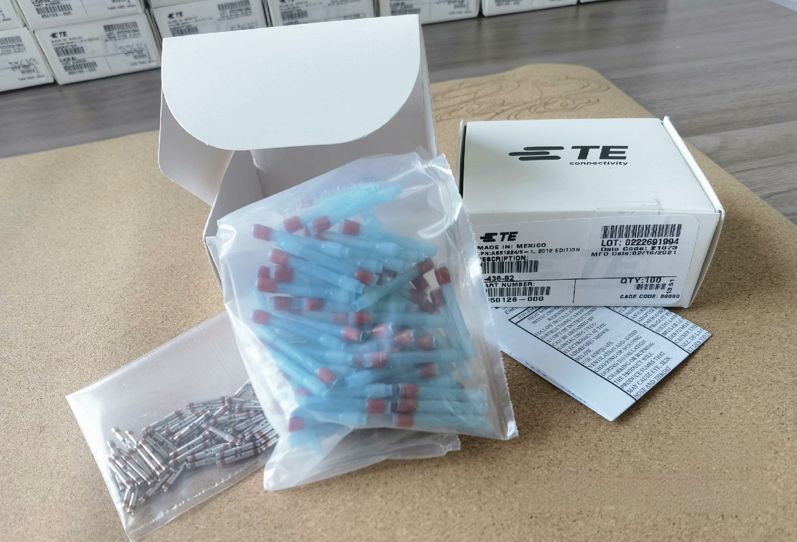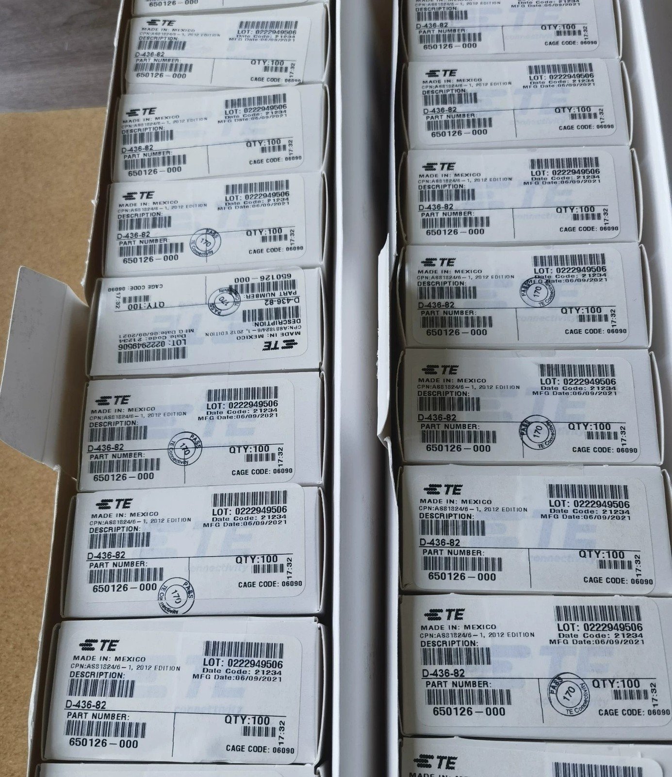 This listing includes 100 pieces of TE D-436-82 connectors new in box. These connectors are suitable for various electronic and industrial applications requiring reliable connections.